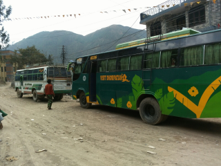 I'm writing this in the bus that will drive me to Pokhara. Better safe than sorry. The long trip also validates my decision, as we slowly crawl our way through winding valleys where the wind bends the trees, dominated by dark clouds overhead. The lack of good landing options matches the lack of potential take-offs. The only way out would be by the top.