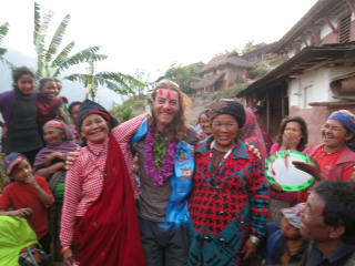 I land on a ridge close to Dhorpatan, which I wanted to visit but I missed the valley (again). As usual now, I'm the first ever paraglider pilot to come here, and the first foreigner since more than 50 years. The welcome is very nice, with a group of women singing and dancing for me, nice scarf and fresh flowers necklace, the whole show!