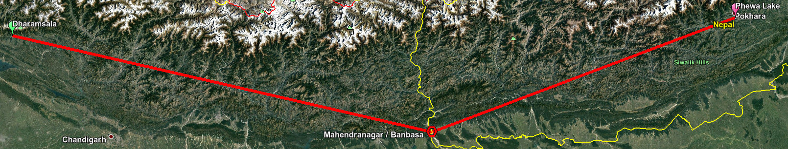 I had to go south for several good reasons. One is that the Kagmara range leads to Dhaulagiri, both very high ranges with very Big Mountains where you need record days and stratospheric cloudbase to cross. The other small problem is the Dhorpatan hunting reserve, home of rhinoceroses and tigers and other nice pets. You don't want to land there.