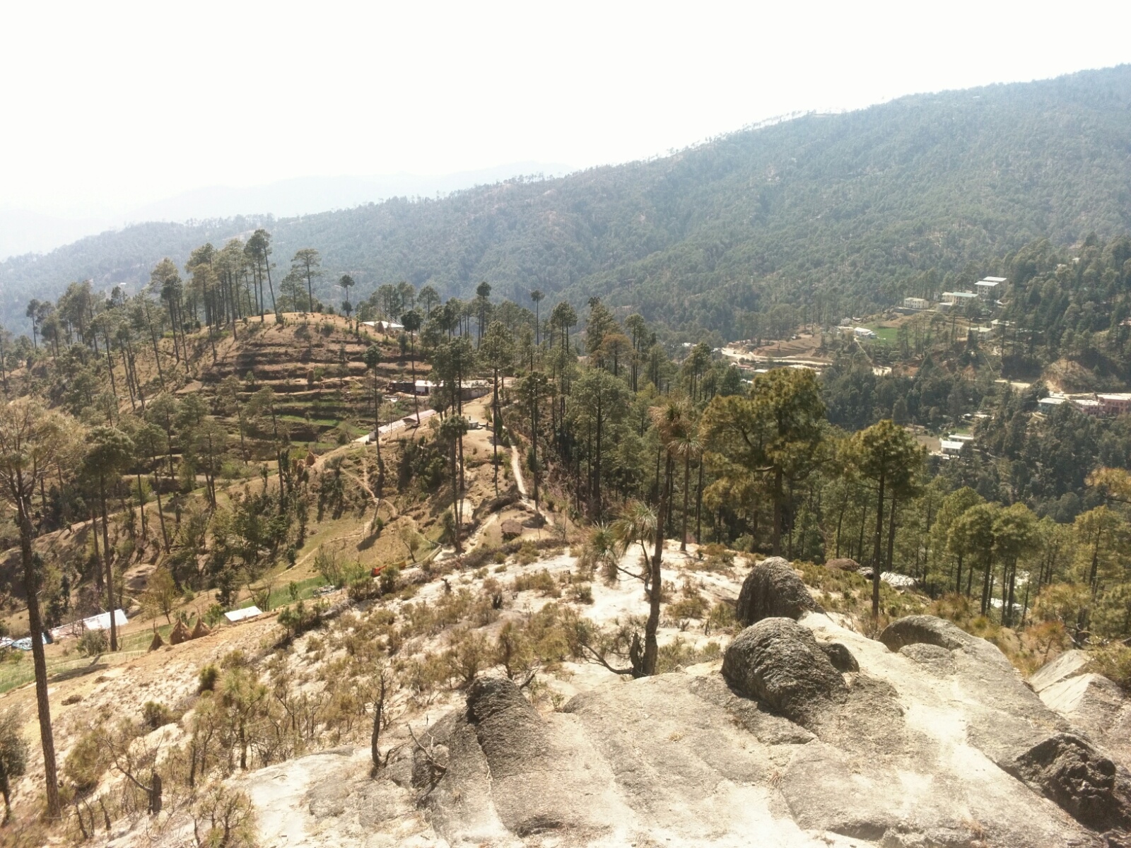 After landing and sorting my wing out, I had to make a decision. I could try to progress, hike on the ridge towards the east, towards Bageshwar, knowing that there is no possibility to take off. It's 25km away, in straight line, at least a full day of hiking, maybe more. I don't have much water and didn't see obvious sources while exploring yesterday. Not good. Or I can hike back to the one takeoff that I know is safe and should work tomorrow. That took me 4 hours, and all of my water, to hike back there. Good decision, tomorrow I'll be prepared. Tomorrow I'll get unstuck.