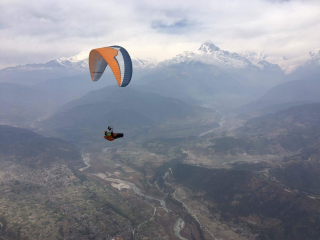 Early launch at 11am in front of cheering children. Extraction is easy, I head back West to go around a big mountain that blocks the way. Then it's a 3 hours long SIV clinic, fighting the Bheri Kola valley wind. It's a real nightmare, the worst flying I've ever done. I follow some vultures who climb where there shouldn't be any lift. Sometimes at full bar facing a cliff I'm at 10km/h, thankfully in the right direction. After more than 40km in a headwind, always in the lee of something, I manage to exit this valley and head South East, towards Pokhara.